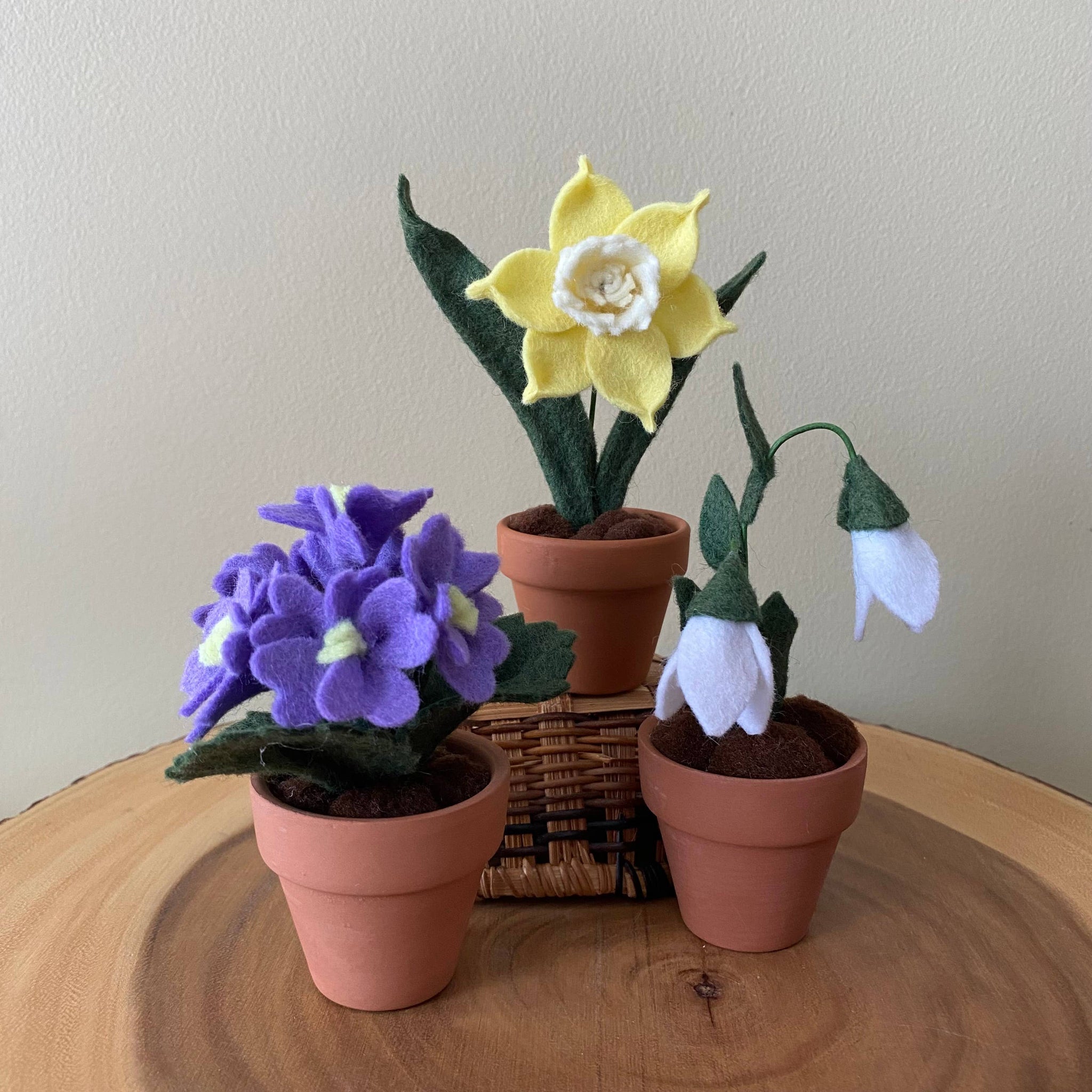 Part of our ‘Birth Month Flower Collection’, these felt Primrose blooms make thoughtful, personalized gifts for February birthdays, anniversaries, or special occasions. A charming addition to any boutique, gift shop, or florist. -felt is an eco-friendly premium wool -stems are made of floral wire and are movable/flexible -1.8” clay pot -approximately 4” tall Care Instructions: -dust with tape, lightly dabbing fibre and making sure it isn’t too sticky Colours may vary slightly due to screen settings and lighting. As this is a handmade product, item may vary slightly from photo.